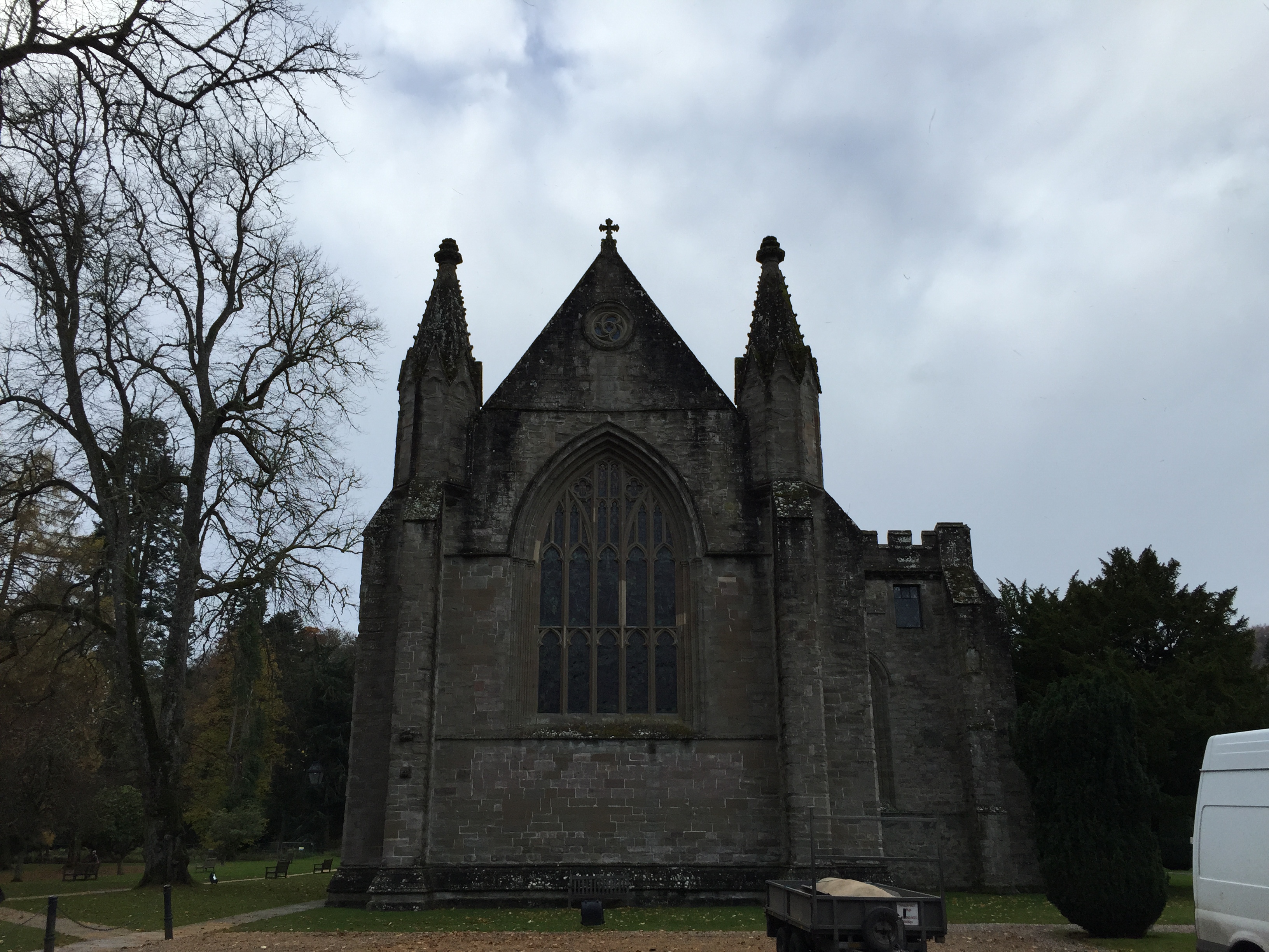 We had a little bit of extra time this morning to spend in Dunfermline after breakfast, so I went back to the Abbey and the nearby park for a walk before it was time to leave for the next gig. After a short drive we arrived in Birnam with some time to kill and decided to walk to Dunkel, the next town over. Dunkeld clams to be the gateway to the Highlands, though we’re not in the Highlands yet, and the first seat of Christianity in Scotland. Like most of the oldest buildings here, Dunkeld Abbey was built in several phases, the earliest of which little is known. The chapel is still an active church, it’s attached to a medieval nave that’s no longer in use and is under heavy restoration. It’s fascinating to see a very old building that’s been in constant use for centuries attached to an older one that’s positively ancient. It’s a visual reminder of how present the past can be in modern life. The Abbey sits next to the Tay river, which is wide, fast, and black. I walked down to its edge and as I got closer to it I could feel in the air the cold of the river. As black as the river was, I could see leaves clearly in it as they were swept by several feet beneath the surface, they seemed to be suspended in glass. It was striking to be so close to such a dark river running fast right next to the perfect green of the abbey lawn.